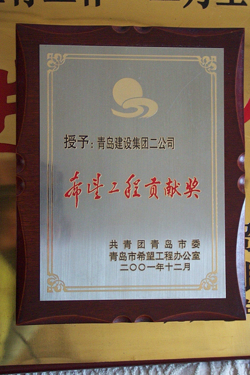 2001年為希望工程捐款20萬元,援助西部貧困山區(qū)建設(shè)希望學校,被團市委、青島市希望工程辦公室授予“希望工程貢獻獎”