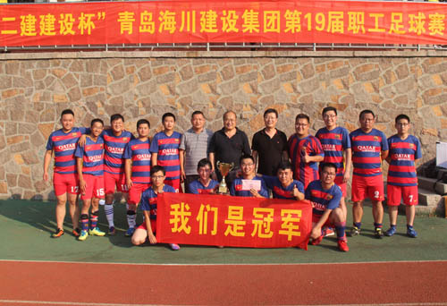 7月4日下午,“二建建設(shè)杯”海川集團(tuán)第19屆職工足球賽冠、亞、季軍爭奪賽在海洋大學(xué)魚山校區(qū)足球場進(jìn)行。首先進(jìn)行的季軍爭奪戰(zhàn)在總部足球隊(duì)和海廈置業(yè)足球隊(duì)之間展開:兩隊(duì)間實(shí)力相當(dāng),不分上下,以0:0結(jié)束全場比賽,隨后進(jìn)行了點(diǎn)球爭奪大戰(zhàn)??偛孔闱蜿?duì)最終以4:2戰(zhàn)勝海廈置業(yè)足球隊(duì),獲得季軍。在隨后進(jìn)行的冠亞軍決賽中,三分二建聯(lián)隊(duì)?wèi){借整體實(shí)力和良好的配合,最終以點(diǎn)球3:2戰(zhàn)勝四分公司足球隊(duì),贏得了本屆足球賽冠軍,四分公司獲得亞軍。公司吳鑫董事長和二建建設(shè)公司總經(jīng)理潘維強(qiáng)、三分公司總經(jīng)理王智到現(xiàn)場觀看了比賽,并在閉幕式上為獲獎(jiǎng)球隊(duì)頒獎(jiǎng)。本屆共有八支球隊(duì)報(bào)名參加比賽,分別是:一分公司隊(duì)、二分公司隊(duì)、三分二建聯(lián)隊(duì)、四分公司隊(duì)、六分公司隊(duì)、七分路橋聯(lián)隊(duì)、海廈置業(yè)隊(duì)和公司總部足球隊(duì)。每隊(duì)15人,共有120余人參加了全部12場比賽。