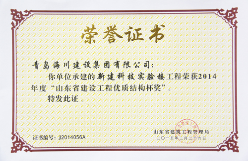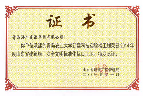 最近,七分公司青島農(nóng)業(yè)大學新建科技實驗樓工程先后從山東省建筑工程管理局捧回了分別于2015年一月和二月頒發(fā)的兩項省級榮譽證書——榮獲“2014年度山東省建筑施工安全文明標準化優(yōu)良工地”和榮獲“2014年度山東省優(yōu)質(zhì)結(jié)構(gòu)杯獎”。消息傳到工地,大家歡欣鼓舞,一年多的努力終于結(jié)出了豐碩的成果。