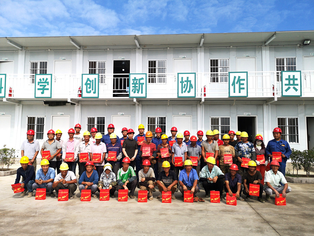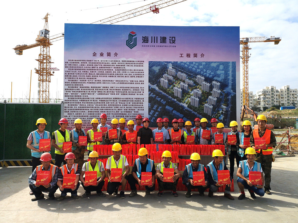 桂花盛開迎團圓,月到中秋分外明。中秋佳節(jié)是與家人團圓的日子,但是海川建設的許多員工卻依然奮戰(zhàn)在海外項目和施工一線。為此,中秋佳節(jié)前夕,海川建設集團工會來到即墨天泰·天空之城項目部、西溫泉社區(qū)安置區(qū)二期(C地塊)項目部、市北區(qū)長沙路人才公寓項目部等在建工地為節(jié)日期間仍然工作在一線的廣大員工送去集團的關心和祝福。