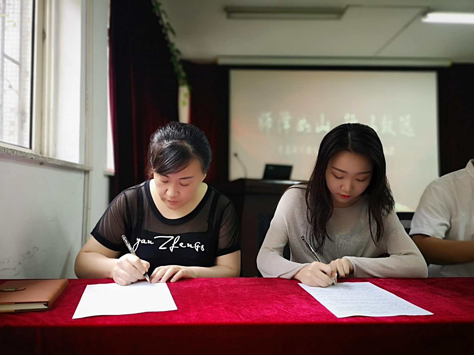 海川商學(xué)院執(zhí)行院長(zhǎng)寧楊宣讀《青島海川建設(shè)集團(tuán)‘師帶徒’協(xié)議書(shū)》,隨后師徒雙方簽訂協(xié)議并舉行了莊重的拜師儀式。